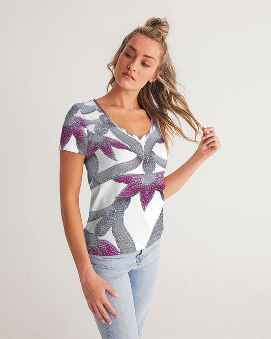 Flowers and Pearls Women's V-Neck Tee