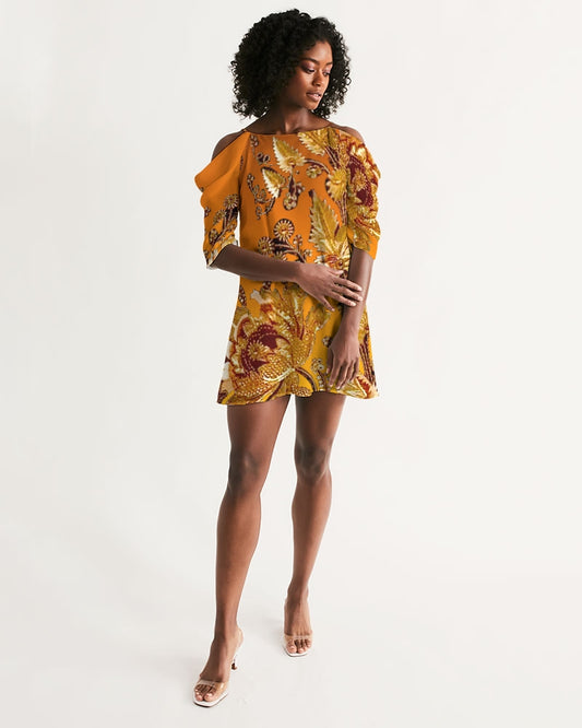 Persian Print Women's Open Shoulder A-Line Dress